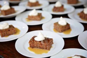 Holiday Party Catering San Diego often includes Figgy Pudding, this pudding has fig cake, salted caramel sauce and whipped cream!